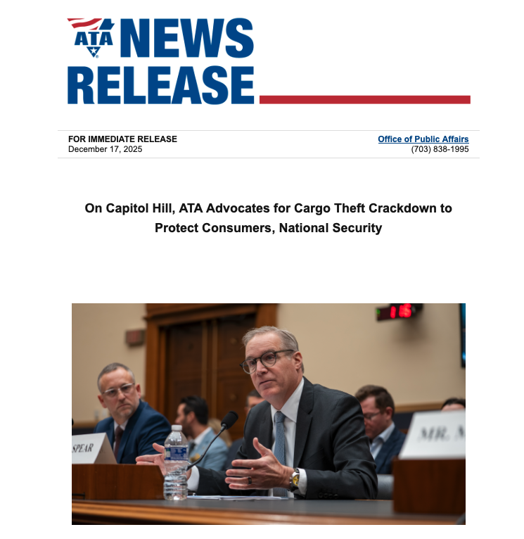 | Watch Chris Spear’s opening statement Washington – American Trucking Associations President and CEO Chris Spear testified before a House Judiciary Subcommittee today, urging Congress to take decisive action to combat the rapid rise in cargo theft that is costing the U.S. supply chain—and American consumers—billions of dollars annually as well as putting truck drivers and national security at risk. This was the ninth time ATA has been invited to speak on Capitol Hill this year. “Brazen thieves are robbing our industry to the tune of $18 million every single day,” Spear told lawmakers. “Plainly, there is a direct connection to rampant cargo theft and what Americans are paying at the grocery store. This is money that belongs in consumers’ wallets—not criminals’ pockets.” Cargo theft is becoming increasingly prevalent and high-tech, and it often originates overseas. Strategic theft, a category of crime that uses cyber fraud and identity manipulation to divert freight, has surged by 1,500% since 2021. Ninety percent of motor carriers are small businesses operating 10 trucks or fewer, and they are under enormous strain to counter their technologically advanced adversaries. The transnational aspect of cargo theft also poses a national security threat. The proceeds from stolen goods finance other criminal activities, including drug trafficking, organized crime, and even potentially terrorism. In his testimony, Spear provided an example of how appliances stolen from an ATA member were later discovered by federal agents to be part of a cartel-linked money laundering operation. Local police did not have the resources or shared intelligence to make that connection. “Trucking is interstate by nature, which means the thieves targeting the cargo we haul are interstate as well,” Spear said. “State and local law enforcement often lack the resources and the jurisdiction to adequately investigate cross-border crimes. Only the U.S. government is equipped with the capability and the constitutional authority to pursue criminals across state and international lines.” To address the crisis, Spear urged Congress to pass the Combating Organized Retail Crime Act. Introduced by a bipartisan, bicameral group of lawmakers earlier this year, CORCA would help law enforcement connect the dots by enhancing legal frameworks; improving enforcement capabilities; and fostering coordination among federal, state, and local agencies. The Department of Homeland Security would be tasked with leading a cohesive national response to cargo theft. “The theft of cargo is a nationwide problem, and it requires a national solution,” Spear said. “By bringing the fight to organized theft groups, CORCA would help safeguard Americans who work in our supply chain and protect our national security.” ATA has testified multiple times on the topic of cargo theft during the current Congress. In February, ATA member Adam Blanchard appeared before a Senate Commerce Subcommittee to relate his experience having his company’s identity stolen and becoming a victim of cargo theft. In April,ATA’s Chief Economist Bob Costello participated in a roundtable with a House Transportation & Infrastructure Subcommittee to discuss the impact that cargo theft is having on trucking operations. And in July, ATA member Donna Lemm testified before the Senate Judiciary Committee about the spike in cargo theft incidents that her company and other motor carriers are facing. +++ American Trucking Associations is the largest national trade association for the trucking industry. Through a federation of 50 affiliated state trucking associations and industry-related conferences and councils, ATA is the voice of the industry America depends on most to move our nation’s freight. Follow ATA on X or Facebook. Nothing Without Trucking. |
